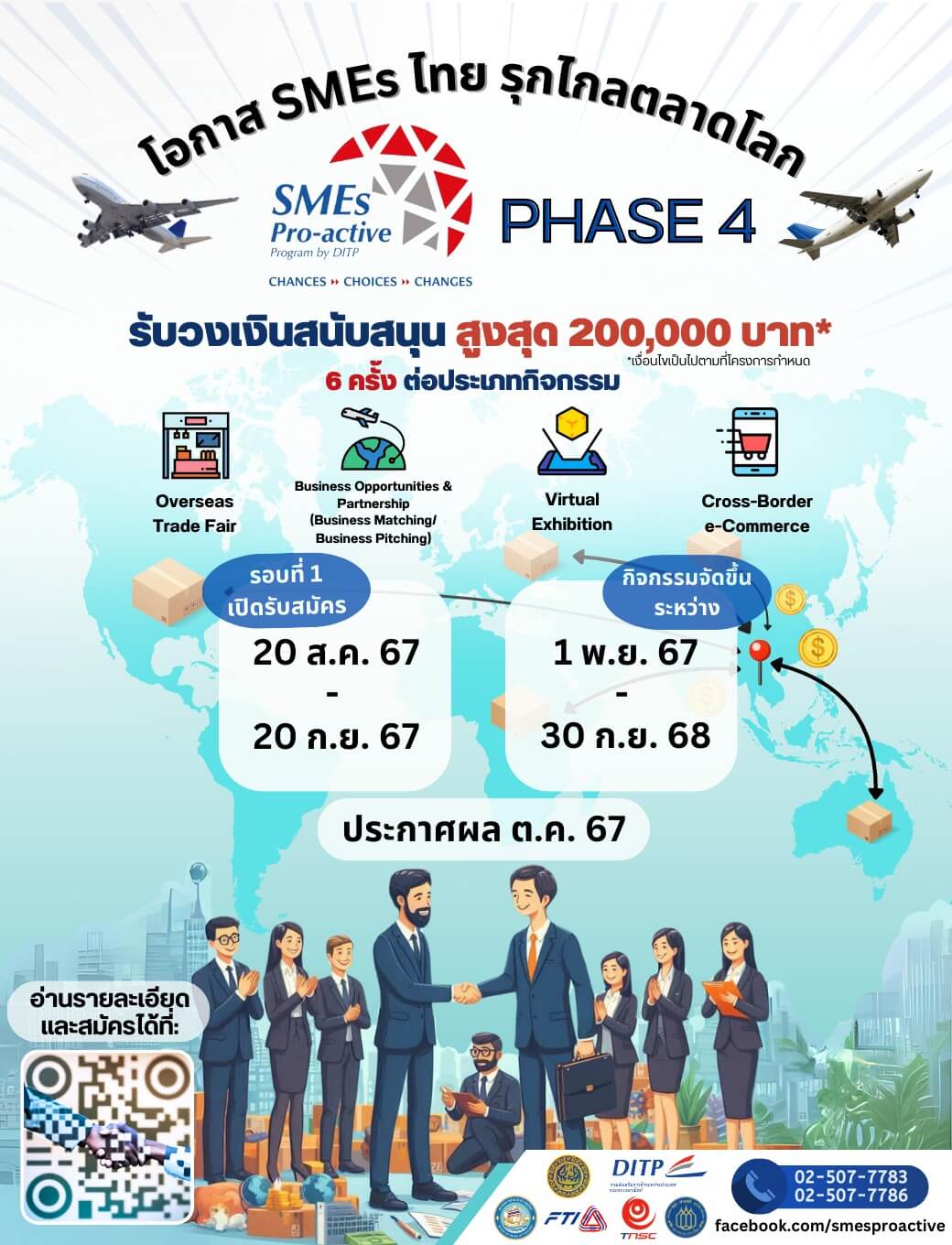เปิดรับสมัครรอบที่ 1 สำหรับ “โครงการ SMEs Pro-active” ระยะที่ 4 วันที่ 20 ส.ค. – 20 ก.ย. 2567