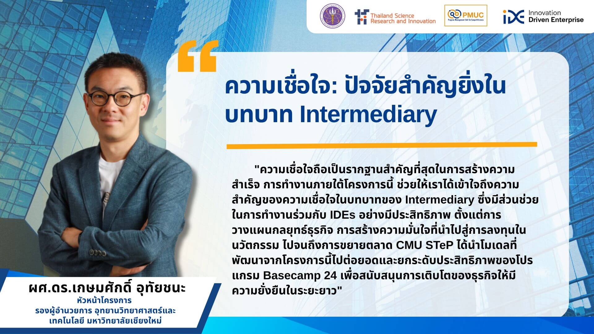 อุทยานวิทยาศาสตร์และเทคโนโลยี มหาวิทยาลัยเชียงใหม่ (CMU STeP) คือหนึ่งใน Intermediary ที่มีบทบาทโดดเด่นภายใต้แผนงาน Innovation Driven Enterprises (IDEs) ด้วยความสามารถในการออกแบบแนวทางสนับสนุนที่ไม่ใช่แค่คำปรึกษา แต่คือ ความร่วมมือเชิงกลยุทธ์ (Strategic Co-creation) ร่วมกับบริษัท