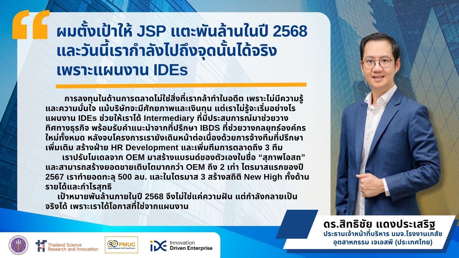 🗣️ “ผมตั้งเป้าให้ JSP แตะพันล้านในปี 2568 และวันนี้เรากำลังไปถึงจุดนั้นได้จริง เพราะแผนงาน IDEs”
