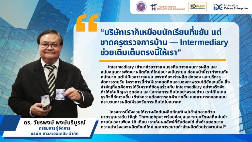 เมื่อมาตรฐานสากลคือสิ่งจำเป็นแต่ไม่รู้จะเริ่มจากตรงไหน – ขาวละออเภสัชค้นพบทิศทางใหม่ของธุรกิจ ด้วยคำแนะนำและกลยุทธ์ที่ชัดเจนจาก Intermediary ภายใต้แผนงาน IDEs