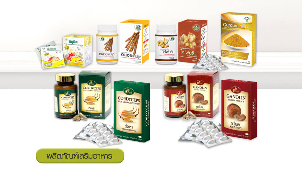 องค์การเภสัชกรรมซึ่งเป็นรัฐวิสาหกิจในการกำกับดูแลของกระทรวงสาธารณสุขหลังจากที่ได้ประสบความสำเร็จในการผลิตยาแผนปัจจุบันมาแล้ว ได้ทำการวิจัยและพัฒนาสมุนไพร เพื่อใช้เป็นยาและผลิตภัณฑ์เสริมอาหารอย่างต่อเนื่อง และขยายผลการวิจัยและพัฒนาไปสู่การผลิตผลิตภัณฑ์สมุนไพรเชิงอุตสาหกรรม โดยใช้เทคโนโลยี และกรรมวิธีผลิตที่ดี (GMP) และระบบคุณภาพ ISO 9001 รวมทั้งมาตรฐานการควบคุมคุณภาพ