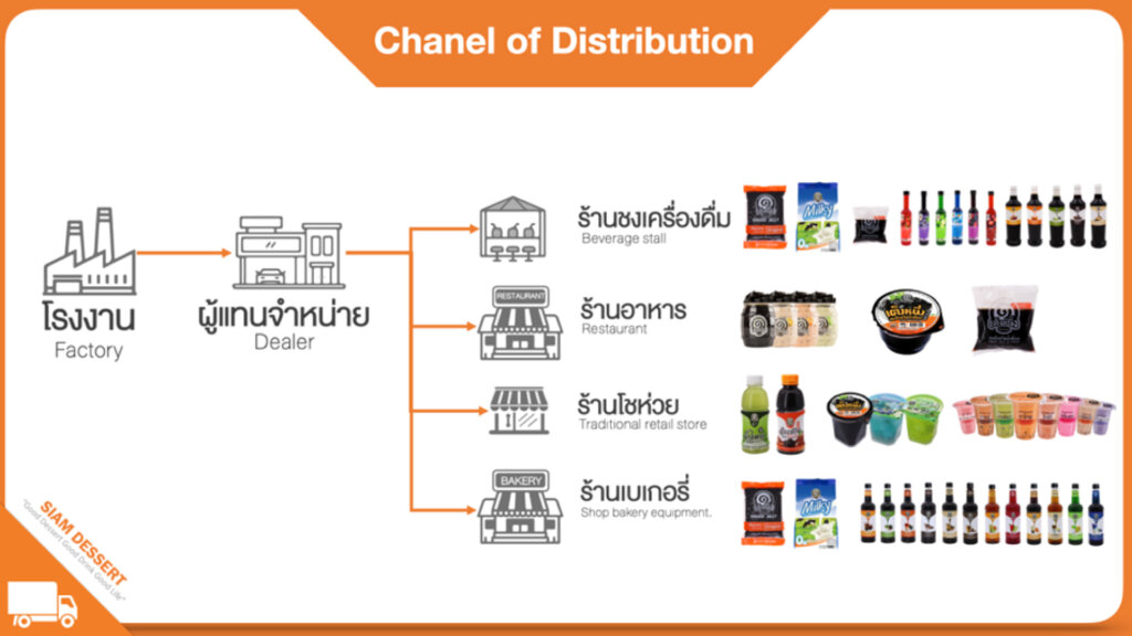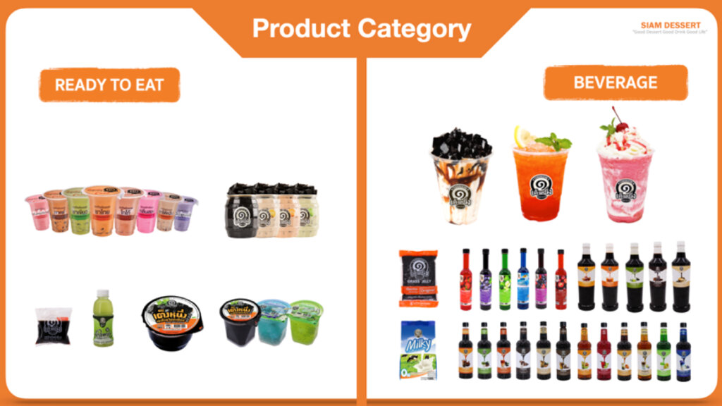 กว่า 4 ปีที่เรามุ่งมั่นพัฒนาสินค้า โดยยึดถือความต้องการที่แท้จริงของผู้บริโภคเป็นศูนย์กลางทำให้ปัจจุบัน บริษัท สยาม ดีเสิร์ท จำกัด มีสินค้ามากมายหลากหลายกลุ่ม อาทิ เช่น สินค้ากลุ่มเนื้อเฉาก๊วย สินค้ากลุ่มน้ำเชื่อมเข้มข้นรสชาติต่างๆ สินค้ากลุ่มเฉาก๊วยในน้ำเชื่อม สินค้ากลุ่มถ้วยพร้อมทาน เป็นต้น ด้วยเหตุผลข้างต้น ทำให้เราสามารถทำตลาดในช่องทางต่างๆได้อย่างหลากหลาย ไม่ว่าจะเป็นช่องทางร้านโชว์ห่วย ช่องทางร้านอาหาร ช่องทางร้านเครื่องดื่ม แม้แต่ช่องทางรับจ้างผลิตสินค้า OEM เราก็สามารถสร้างสินค้าที่ตอบโจทย์ความต้องการของลูกค้าในช่องทางนั้นๆได้เป็นอย่างดี