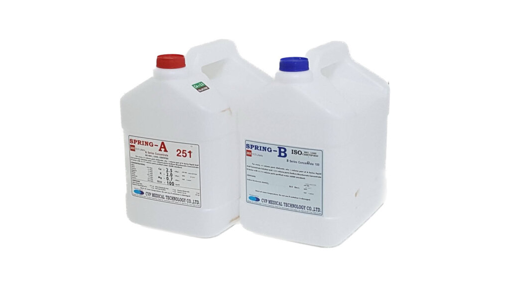 1. ผลิตภัณฑ์ฟอกเลือดสำหรับเครื่องไตเทียม (Hemodialysis concentrate solution) ยี่ห้อ SPRING