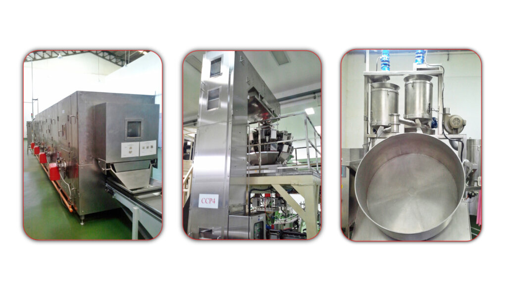 ผลิตภัณฑ์หมึกปรุงรส คัดสรรวัตถุดิบหมึกที่มีคุณภาพนำมาผ่านกระบวนการปรุงรสอย่างพิถีพิถันก่อนทำการย่าง อบ เพื่อคงไว้ซึ่งรสชาติความอร่อย ผลิตภัณฑ์ถั่วลิสง เมล็ดมะม่วงหิมพานต์ปรุงรส คัดสรรถั่วลิสง เมล็ดมะม่วงหิมพานต์เมล็ดใหญ่เต็มคำ นำมาเคลือบด้วยแป้งสูตรพิเศษ ส่งต่อไปยังเครื่องคั่วที่เป็นเทคโนโลยีชั้นนำจากญี่ปุ่น