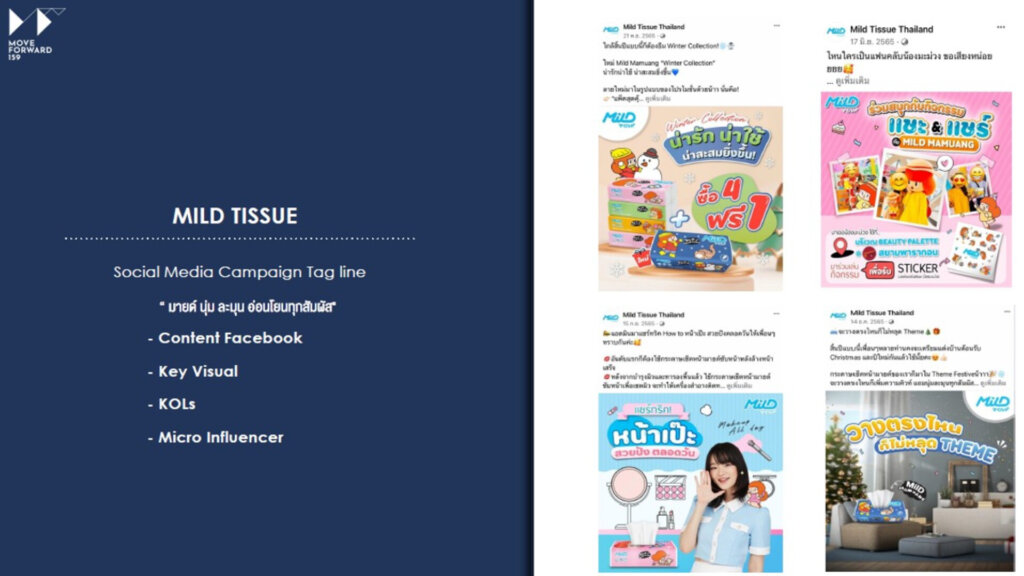 บริษัท มูฟ ฟอร์วาร์ด 159 จำกัด ก่อตั้งขึ้นเมื่อปี 2561 มีเป้าหมายหลักในการเป็นที่ปรึกษาทางด้านการตลาดและการวางแผนกลยุทธ์สื่อโฆษณาออนไลน์สำหรับธุรกิจทุกขนาด มีความเชี่ยวชาญในการให้คำแนะนำด้านการสื่อสารแบรนด์ การบริหารโซเชียลมีเดีย และการตลาดดิจิทัลแบบครบวงจร